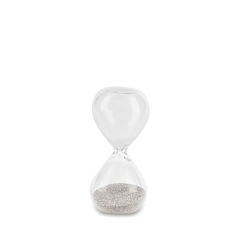 Bomboniere Nozze ArgentoClessidra vetro con Sfere Argentate, scegli la misura tra  piccola 8 cm (3 minuti) e  grande 13 cm (5 minuti).