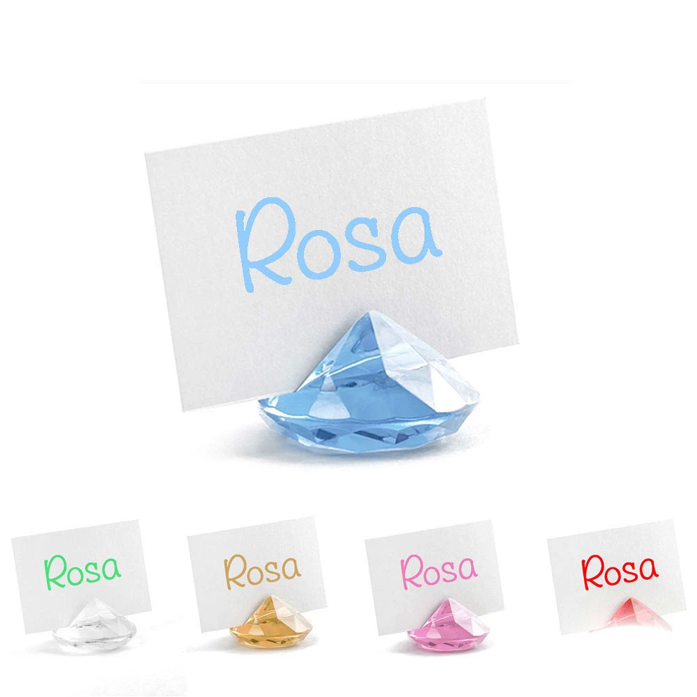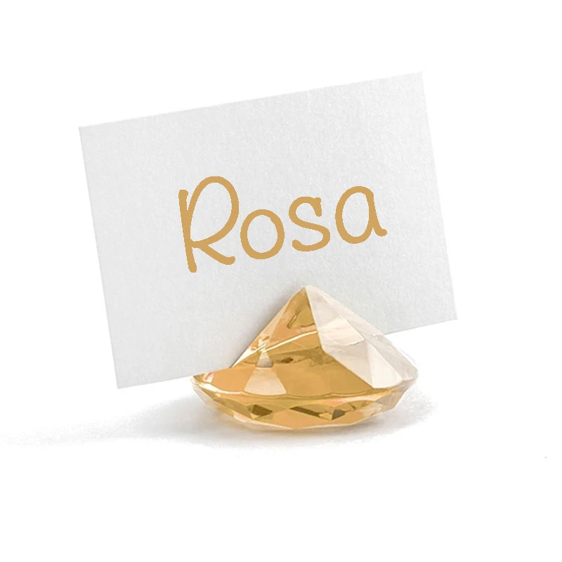segnaposto originale a forma di diamante, il diamante è in plastica, molto bello ed elegante, il prezzo si riferisce al singolo diamante (no cartoncino), misura diametro 4 cm.