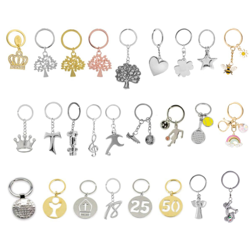 bomboniere utili portachiavi in metallo acciaio, misura 3-4 cm (piu catena ed anello) scegli il modello tra: