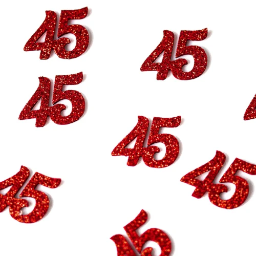 Applicazione numero 45 in gomma glitterata colore rosso ideale per Nozze di Rubino misura 2,5x3 cm, ideale per decorazioni e confezioni di bomboniere per 45 anniversario di matrimonio