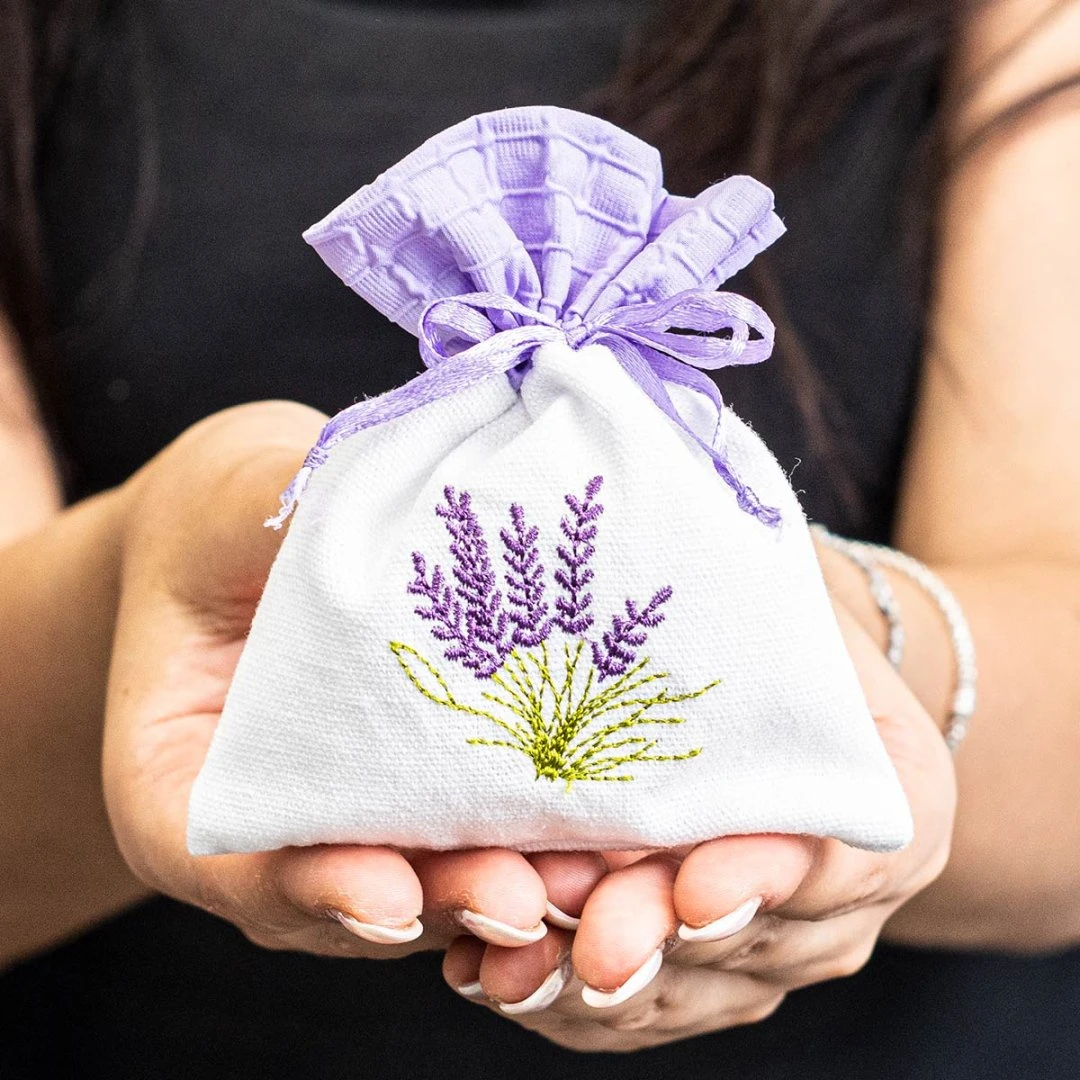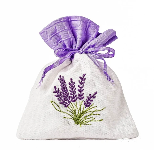 Eleganti sacchettini portaconfetti in cotone bicolore bianco e lilla, impreziositi da un delicato rametto di lavanda ricamata. Una proposta fresca, romantica e artigianale, ideale per matrimoni, battesimi, comunioni o eventi a tema provenzale. Misura: 10 x 12 cm. Prezzo cadauno.