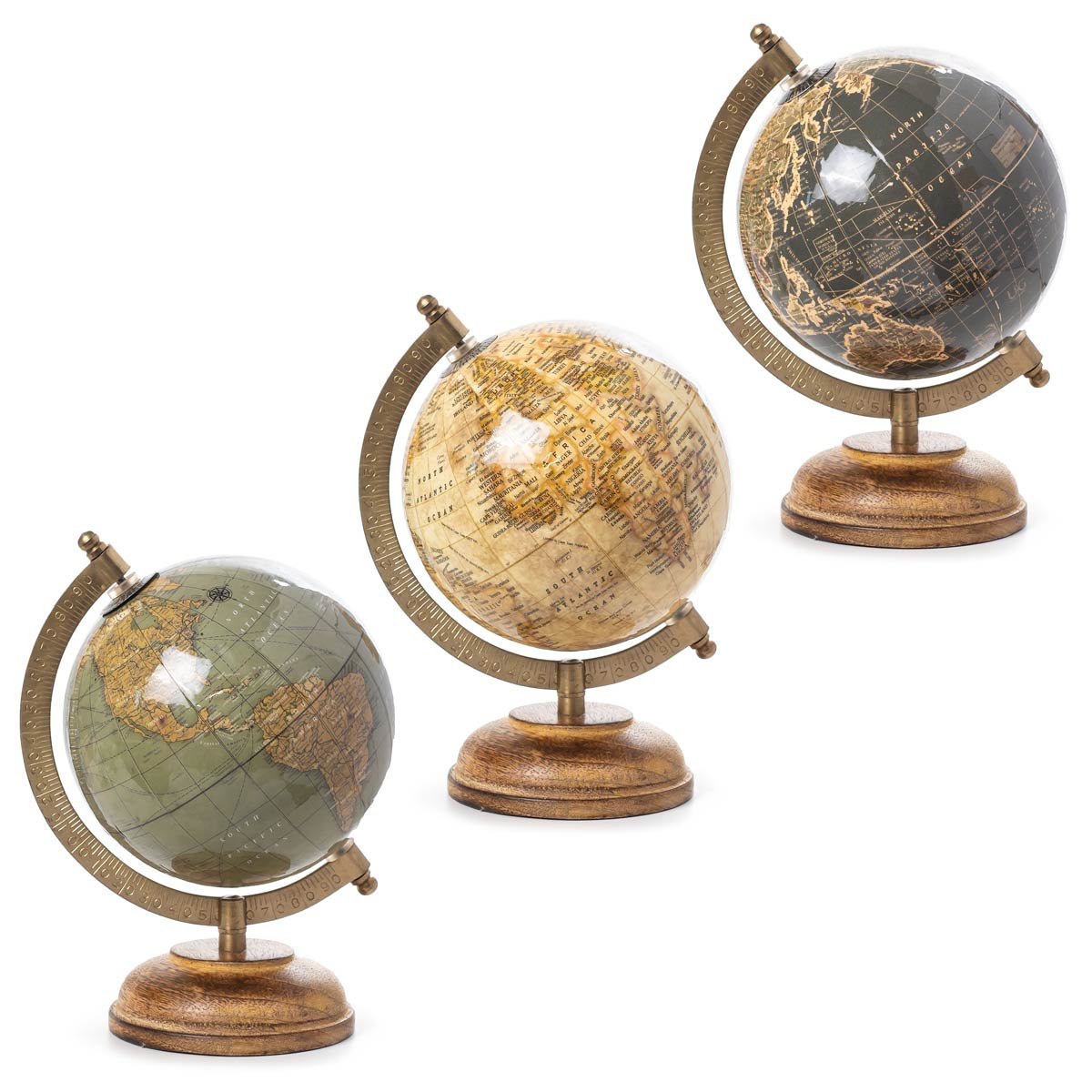 bomboniere a tema viaggio, mappamondo con supporto in ottone e mondo in plastica rivestita, stile vintage, arriva misto nei 3 colori bianco-beige-nero articolo dall'ottimo rapporto grandezza-prezzo misura 14x13x21 cm