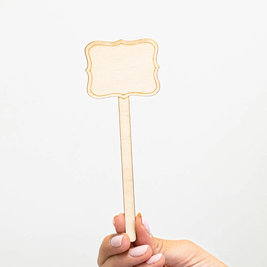 Segna gusto per confettata, Bastoncino in legno con targhetta dove puoi scrivere con il pennarelino o penna il gusto dei confetti, delle caramelle o dei macarons della caramellata della tua festa, misura 15x5 cm