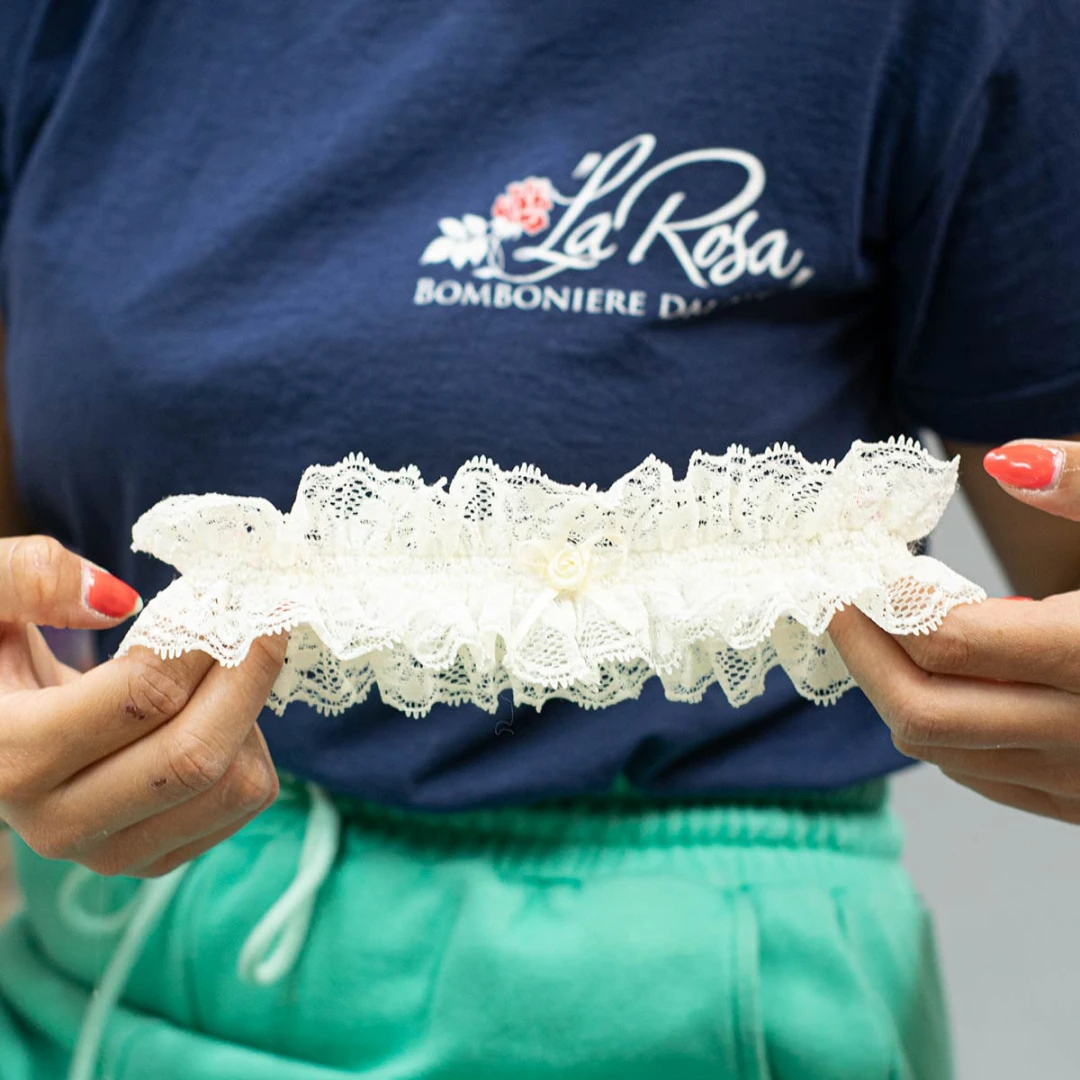 Giarrettiera per la Sposa avorio per il suo matrimonio, il materiale è molto-elasticizzato ed in pizzo, l' altezza della fascia misura h 6 cm.