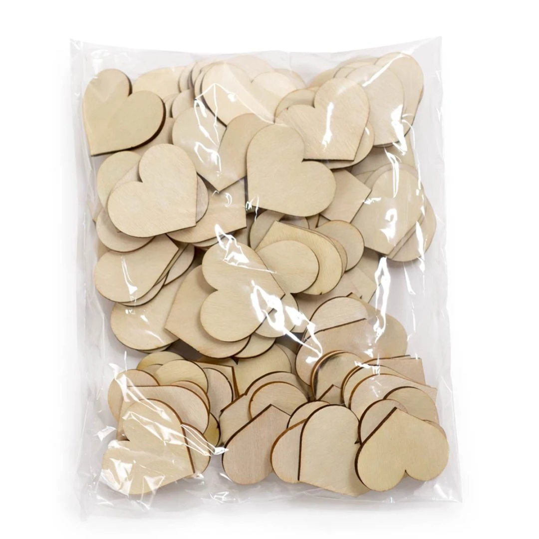 Il set include 100 cuori in legno su cui gli invitati potranno scrivere dediche, pensieri e auguri per il festeggiato.