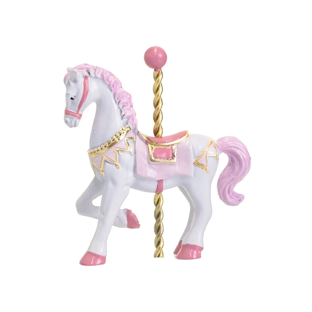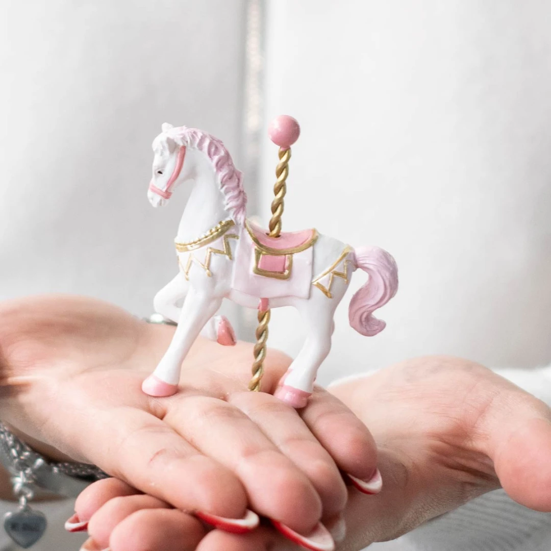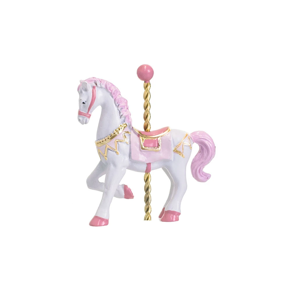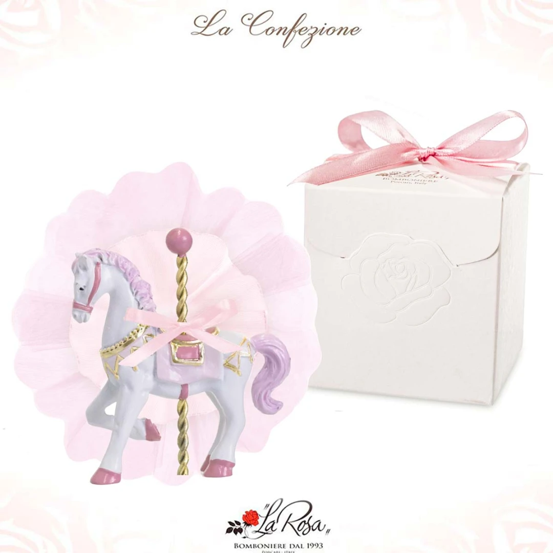 Bomboniere Battesimo e Nascita originali per bimba, collezione 2026, Cavallini giostra rifiniti oro e rosa in resina. Prodotto Artigianale. Prezzo cadauno. Inoltre è possibile aggiungere una base in legno personalizzata.