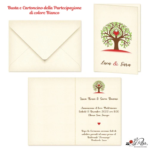 Partecipazioni Matrimonio Albero della Vita per nozze, con immagine dell'albero della vita con cuore e nomi degli sposi.