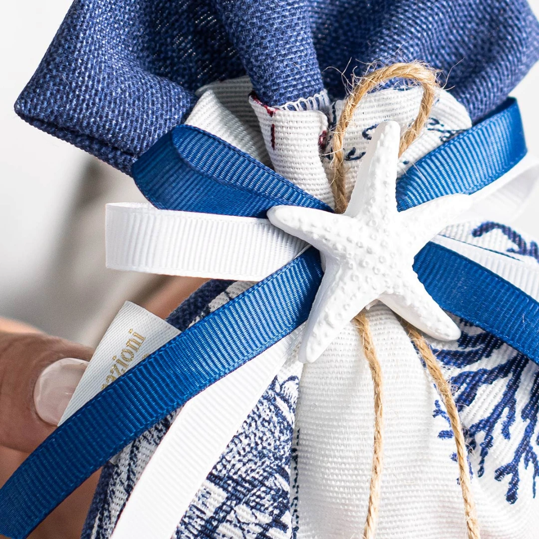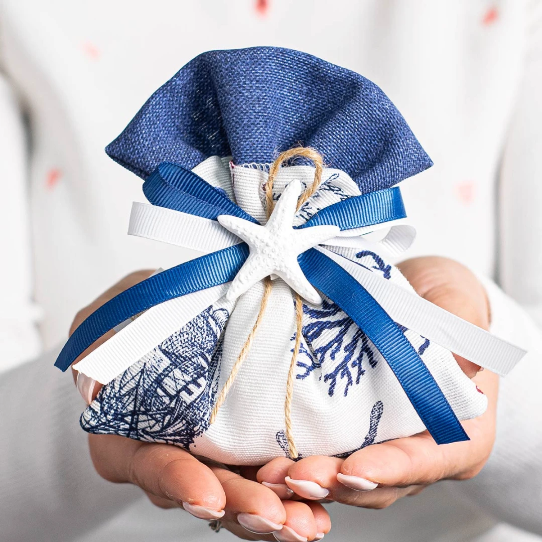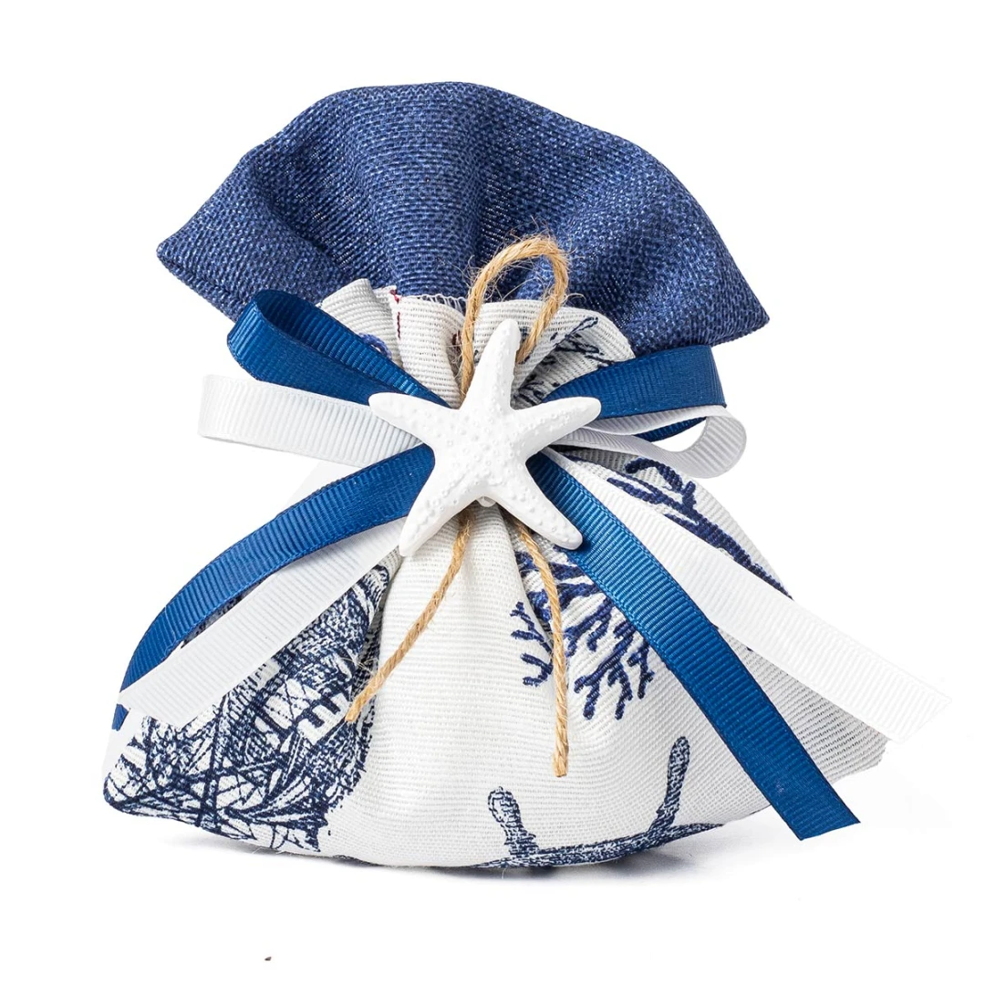 Bomboniere Tema Mare 2026 Sacchettini Portaconfetti con fantasia marina ed applicazione stella