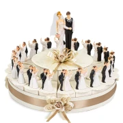 seleziona confezione e ti arriverà la torta completa di 5 confetti cioccolato e bigliettino stampato pronta per essere donata ai tuoi invitati