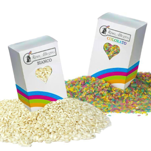 Il nostro Riso Bianco e Colorato è specifico la tua cerimonia. tramite un processo di sottrazione dell'amico il nostro riso può essere lanciato contro ogni tipo di abito visto che non macchia i vestiti, anche in caso di pioggia.