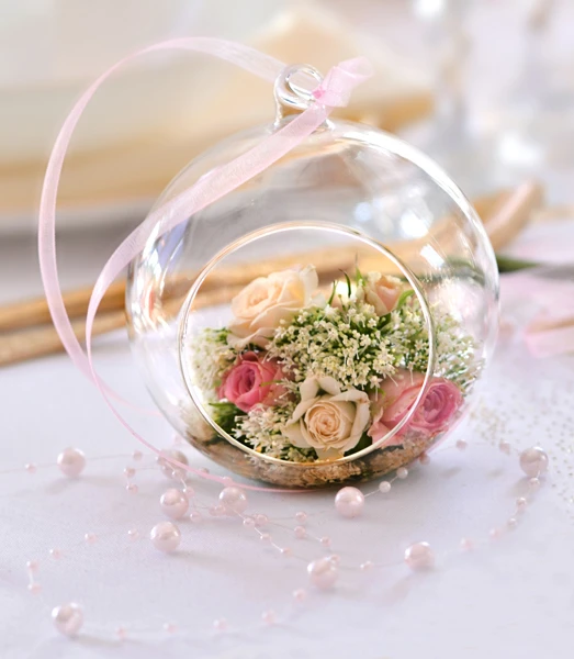 Sfere di vetro soffiato con nastro, diametro 10 centimetri, diametro sfiato ca. 5,5 centimetri, lunghezza del nastro ca. 7,5 centimetri.
