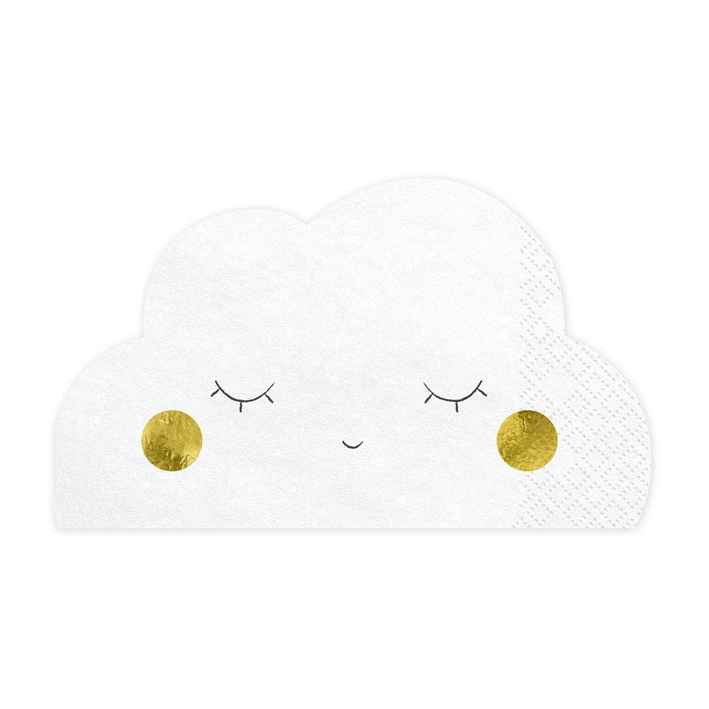 confezione da 20 Tovaglioli di carta a froma di nuvoletta adatti per feste di compleanno, battesimi, baby shower, comunioni ecc molto belli, misura 16x10 cm, prodotto biodegradabile.