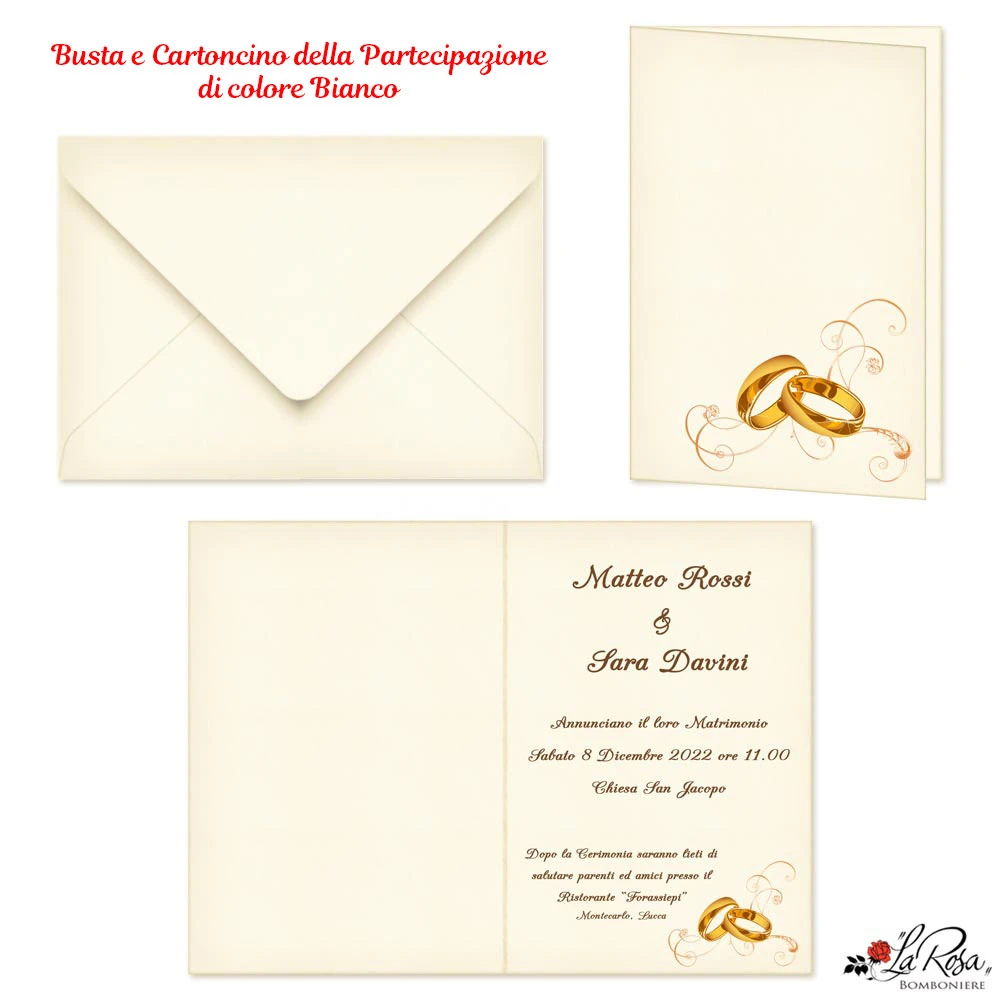 Partecipazioni Matrimonio, con immagine fedi e decoro elegante.