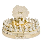 sacchetti portaconfetti di altissima qualita realizzato in Italia, in cotone con stampa love e cuori, completo di fiocco in grosgrain, calamita cuore rosso in ceramica, 5 confetti alla mandorla e bigliettino stampato.