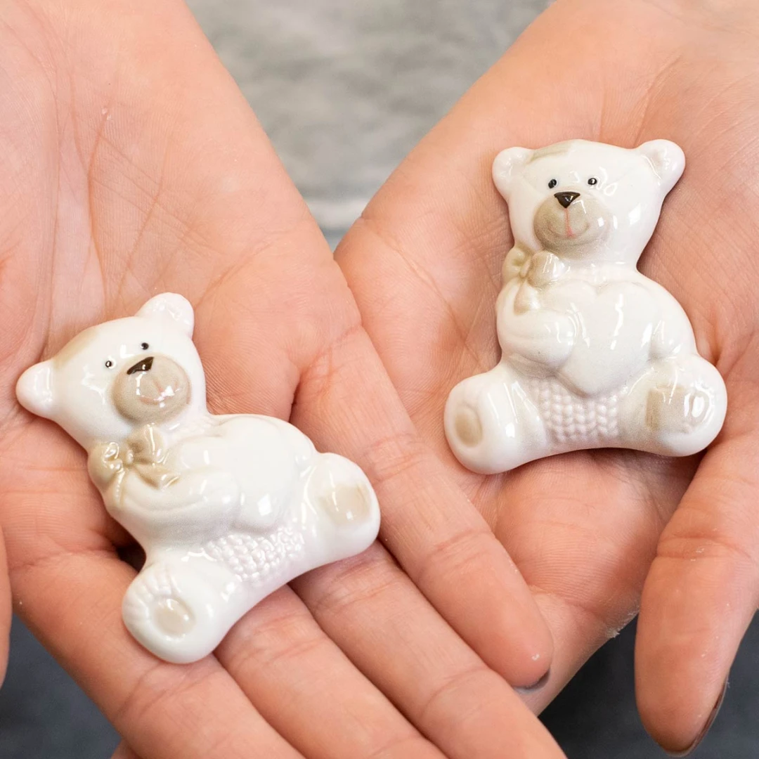 ultimi 24 pezzi Bomboniera e segnaposto, simpatico orsetto in ceramica decorato a mano, misura 5 cm
